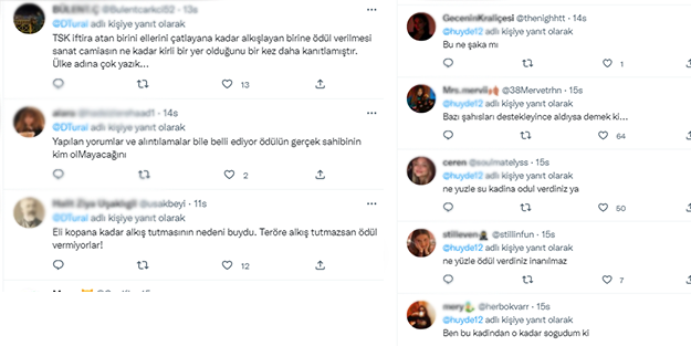Tartışmanın ardından sahneye çıkan oyuncu Selcen Ergün ise Burak Haktanır'ın çıkışına tepki göstererek "Az önce bir arkadaş arkadan bağırdı, niye bağırdığını da anlamadım. Bu çok eril bir şey. O erilliğin azaldığını, bu mevzuların dışarı çıkıp sakince konuşulduğu..." dedi. Haktanır ise kendisine tepki gösteren Ergün'ün "Ben bu konuyu anlamadım" demesi üzerine "Anlamadığınız konulara girmeyin o zaman" ifadelerini kullanmıştı.
