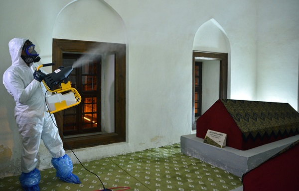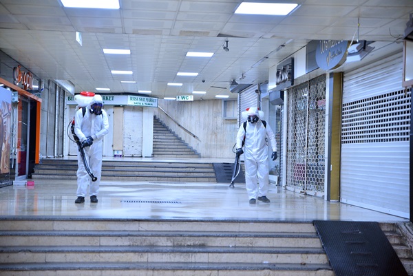 Dünyayı etkisi altına alan 'Covid 19' salgınıyla mücadele kapsamında Türkiye’de ilk vakanın görüldüğü 11 Mart’tan itibaren adeta alarm durumuna geçen ve özellikle ekonomik ve sosyal destek paketleriyle süreçten olumsuz etkilenen herkesin yanında olan Bursa Büyükşehir Belediyesi, bu süreçte dezenfeksiyon çalışmaları için de yoğun mesai harcıyor. Büyükşehir Belediyesi Sağlık İşleri Dairesi Başkanlığı bünyesinde yürütülen dezenfeksiyon çalışmaları salgının yayılımının önlenmesi bakımından büyük önem taşıyor. Bursa’nın 17 ilçesini kapsayacak şekilde Veteriner Hizmetleri Şube Müdürlüğü tarafından oluşturulan 82 ekipman, 32 araç ve 69 kişilik ilaçlama ekibi bugüne kadar 15 bin 340 ayrı noktada dezenfeksiyon uygulaması yaptı. Toplu taşıma araçları, ticari taksi ve dolmuşlar, camiler, kamu kurumları halkın yoğun olarak ziyaret ettiği turistik ve tarihi yerler, semt pazarları, eğitim kuramları ve sosyal tesisleri de kapsayan bu çalışmalarda yaklaşık 59,3 milyon metrekare alanda dezenfeksiyon yapıldı. Ayrıca bu süreçte Bursa genelinde hafta içi ve hafta sonu kurulan pazar yerlerinde, metro durakları ve camilerde yaklaşık 70 bin adet ücretsiz maske dağıtıldı.