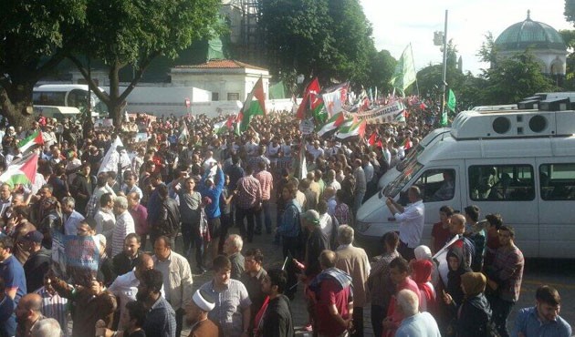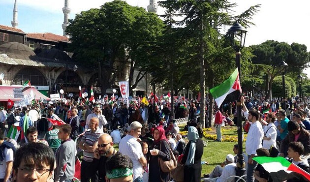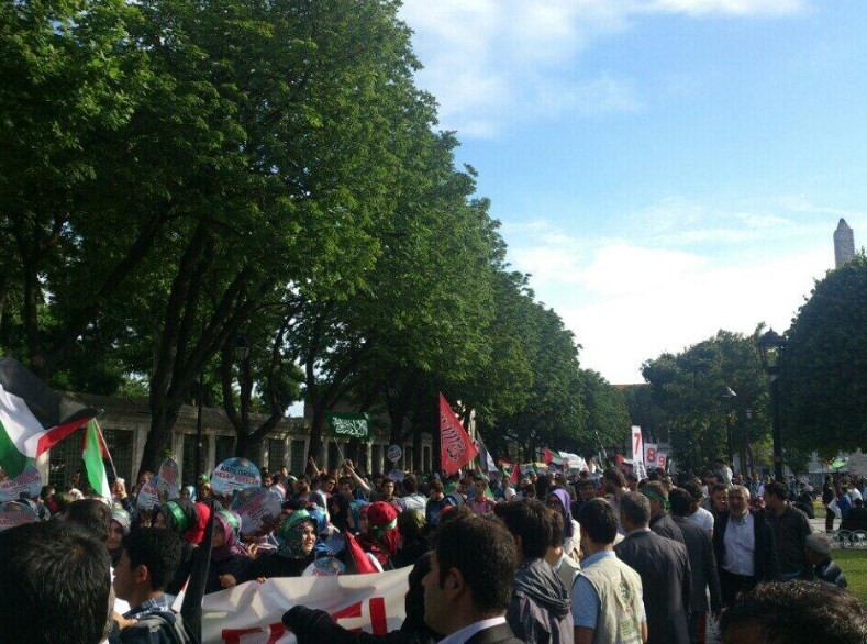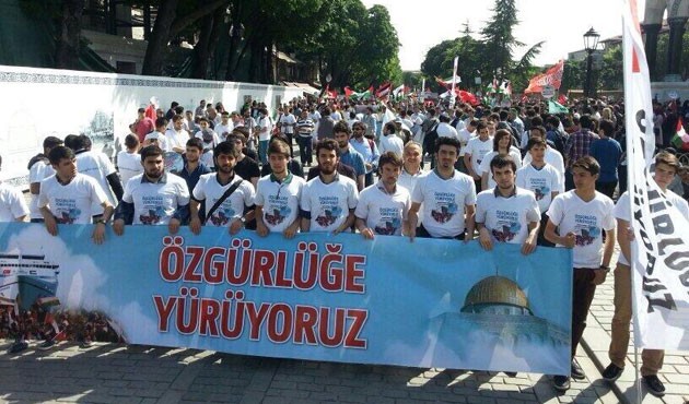 Mavi Marmara Gemisi'ne uluslararası karasularda düzenlenen saldırının yıldönümü sebebiyle İHH'nın öncülüğünde düzenlenen ve çok sayıda STK'nın destek verdiği yürüyüş Sultanahmet'ten başladı.