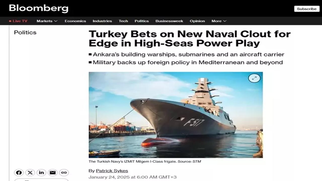 ABD merkezli medya kuruluşu Bloomberg, Türkiye'nin artan deniz gücünü vurgulayan bir analiz yayımladı.