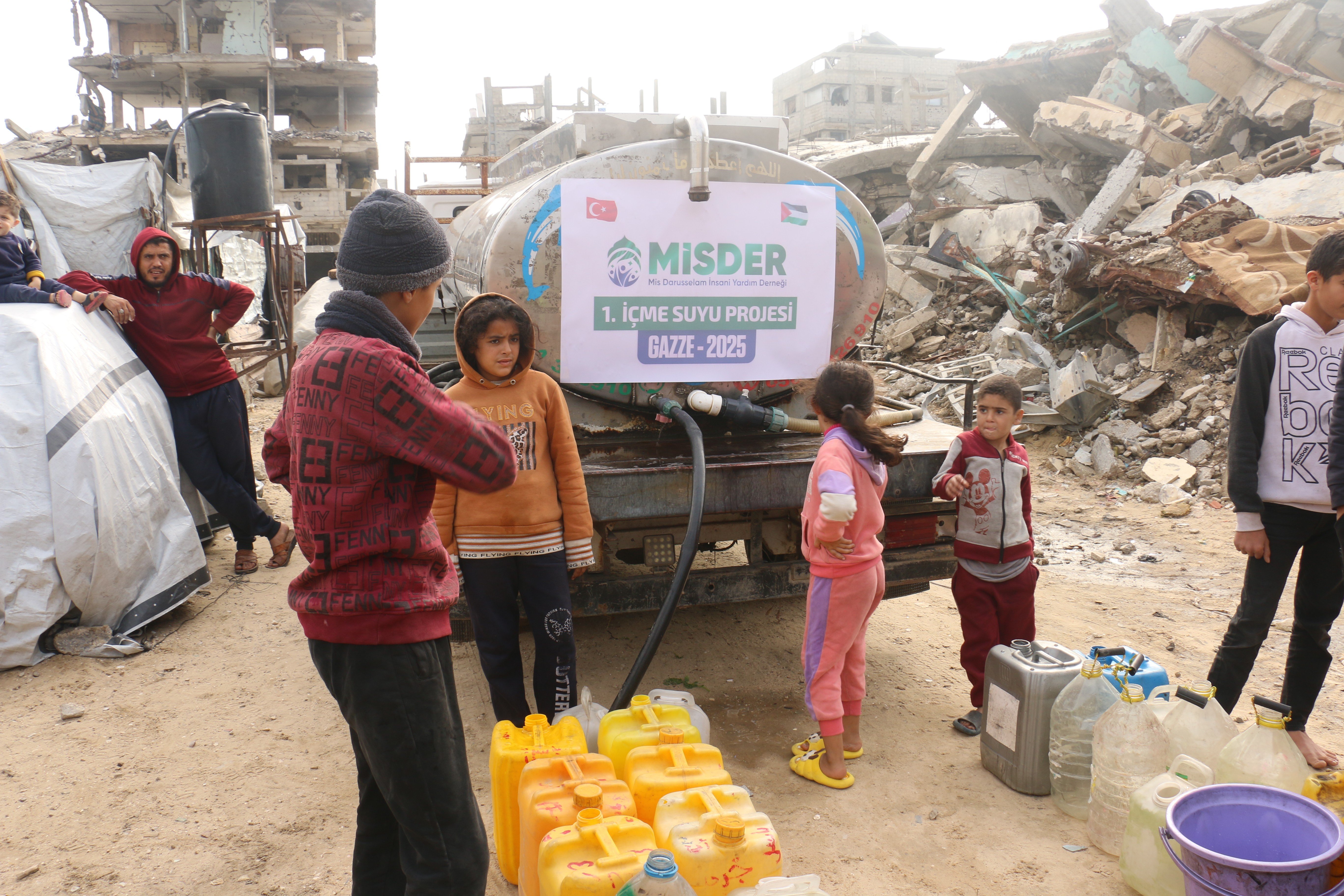 "Gazze’ye Su Olduk" müjdesiyle duyurulan çalışmalarda, bağışçılarımızın katkılarıyla dolan dev su tankerleri, tozlu ve enkaz dolu yolları aşarak ihtiyaç bölgelerine ulaşıyor. Tankerlerin vanaları açıldığında, tertemiz içme suyuna kavuşan Gazzeli kardeşlerimizin sevinci kelimelerle tarif edilemez. Çocukların ellerindeki bidonları doldururken gözlerinde çakan o umut ışığı, yapılan yardımın sadece bir maddi destek değil, aynı zamanda bir yaşam pınarı olduğunu kanıtlıyor. MİSDER, bu tankerleri her gün en tehlikeli bölgelere sevk ederek, susuzluktan kaynaklanan hastalıkların önüne geçmek için gece gündüz nöbet tutuyor.