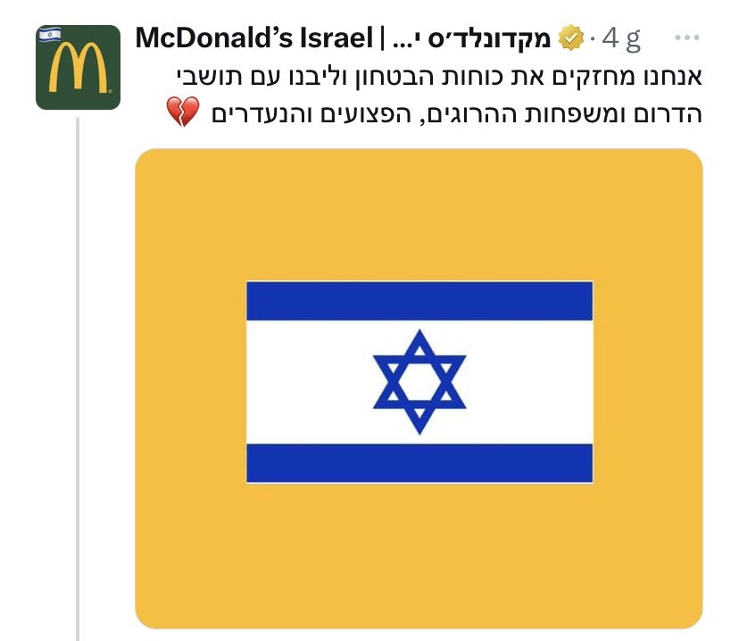McDonalds, Gazze'de Filistinlilere yönelik soykırım suçu işleyen siyonist katillere bedava yemek bağışında bulunacağını açıkladı.