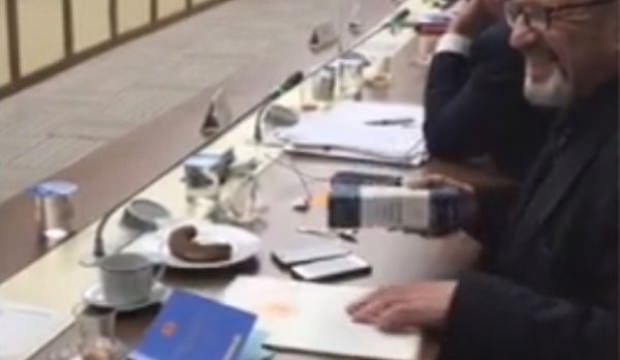 Bu sırada çekilen görüntülerde bir milletvekilinin "Devletin malı değil mi İsmail Abi" dediği duyuluyor. Bu sözler üzerine Saadet Partili Cihangir İslam da gülümsüyor.