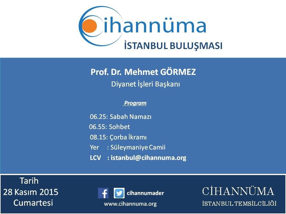 Cihannüma İstanbul Buluşması'nda bu hafta Diyanet İşleri Başkanı Prof. Dr. Mehmet Görmez ağırlanacak.