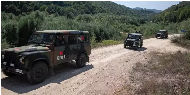 Kosova'da NATO'nun Kosova'daki Barış Gücü (KFOR) bünyesinde 1999 yılından bu yana görev yapan Türk askeri, Kosova-Sırbistan sınırında devriye geziyor.