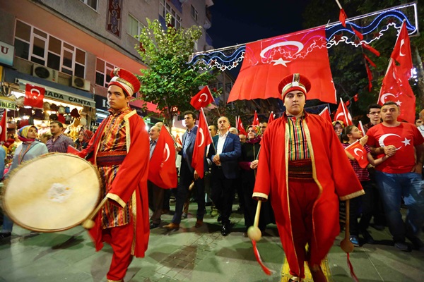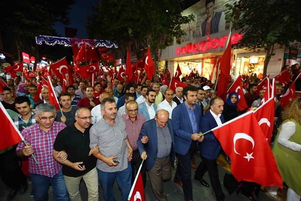 Milli iradeye düzenlenen darbe girişimine canları ve kanları ile karşı duran Türk insanının destansı mücadelesi gözler önüne serildi. Darbe girişiminin haftasında düzenlenen yürüyüşe binlerce Bağcılarlı katıldı. Ebubekir Camii, Yıldıztepe, Çiftlik Demircan camileri önü, Kirazlı Metro İstasyonu, ve Çarşı Caddesi Tabya girişinde buluşan ilçe sakinleri ellerinde şehitlerin isimlerinin yazılı olduğu döviz ve bayraklarla Meydan’a kadar mehteran ve tekbirler eşliğinde yürüdü. Programda bir konuşma yapan AK Parti Milletvekili Feyzullah Kıyıklık, 15 Temmuz’da yeni bir sayfa açıldığını kaydetti. Tankın altında kalan bir kadın kahramanın can verdiğini, çocuğun ölüm tehlikesi atlattığını, nicelerinin de silahla vurularak şehit edildiğini anlattı. Kıyıklık, “Hangi görüşten olursa olsun tüm insanlarımız demokrasiye sahip çıkmıştır. 15 yıldır ABD’de besledikleri adam var. Onu üzerimize sürdüler. Cumhurbaşkanımız Recep Tayyip Erdoğan’ın kurduğu huzur toplumunu ortadan kaldırmak istediler, ancak başaramadılar.” dedi.