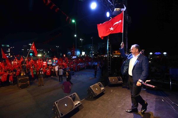 Bağcılar Belediye Başkanı Lokman Çağırıcı ise, dünyada bir ilki Türk milletinin başardığına dikkat çekti. Askeri ihtilallere karşı topun, merminin ve tankın karşısında durarak destan yazıldığını vurgulayan Çağırıcı, “Dünya ülkemizin bu kahramanlığını konuşuyor. Cumhurbaşkanımız ve Başkomutanımız Recep Tayyip Erdoğan’ın çağrısıyla evinden çıkıp darbe yapmak isteyen meczuplara Osmanlı tokatı atmıştır. Tarih bu büyük destanı gelecek kuşaklara anlatacaktır.” dedi. Televizyon Programcısı Ömer Döngeloğlu da “Tantunici Dalyan Efendi tankın egzosuna gömleğini atarak hain askerleri dumana boğdu. Dışarı çıkmalarını sağladı. Herkes topyekün mücadele verdi. Birliğimizi kimse bozamayacak.” diye konuştu.