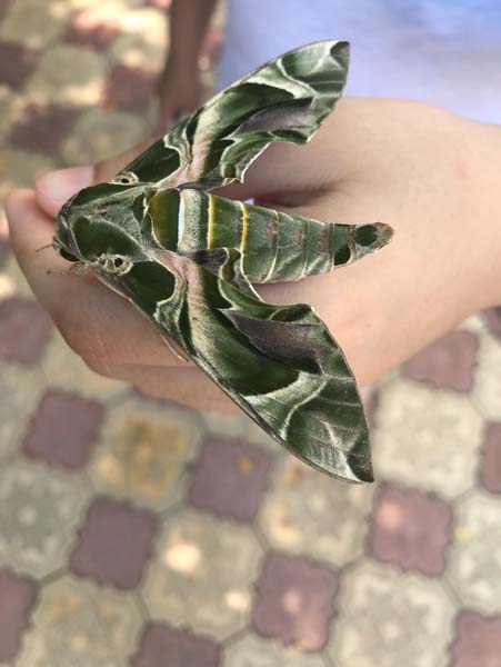 Akdeniz ve Ege kıyı şeridinde rastlanan güzelliğiyle ünlü olan mekik kelebeği (daphnis nerii), Muğla Güvercinlik'te görüldü.