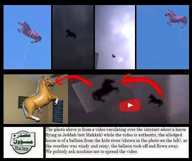 Çekimin kaynağı bilinmiyor. Ancak videonun geçmişi takip edildiğinde, 24 Kasım 2014’te, Filipinler’de Angel Louise Dela Cruz isimli bir kadının videoyu Facebook paylaşım sitesi üzerine yüklemesiyle başladığı bilgisine ulaşabiliyoruz. Ancak kadın ne videoyu kendisinin çektiğini iddia ediyor ne de nereden bulduğunu açıklıyor. Bu tarihten birkaç gün sonra, video “Cidde, Suudi Arabistan’da Uçan Siyah At” ve “Mekke’de Uçan At Görüldü”başlıklarıyla Youtube’a yüklendi ve en az bir milyon kişi izledi.