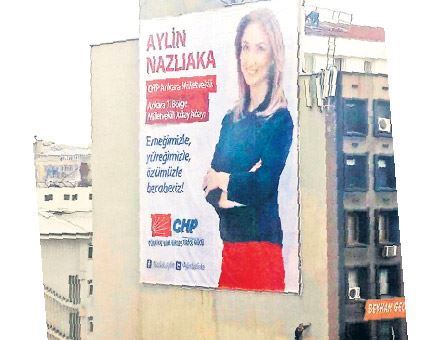 CHP Ankara Milletvekili ve 1. Bölge Milletvekili Aday Adayı Aylin Nazlıaka, 8 Mart Dünya Emekçi Kadınlar Günü kutlaması dolayısıyla Kızılay'da bir bina cephesine astırdığı afişin, parası ödenmiş olmasına rağmen Ankara Büyükşehir Belediye Başkanı Melih Gökçek tarafından, "tehdit"le indirildiğini iddia etti.