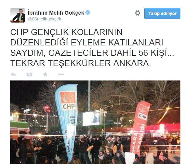 Berkin Elvan için dün eylem çağrısı yapan CHP Ankara İl Gençlik Kolları, pek fazla kalabalık toplayamayınca Melih Gökçek'e malzeme konusu oldu.
