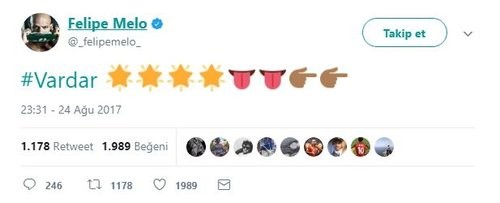 Bir dönem Galatasaray'da forma giyen Brezilyalı futbolcu Felipe Melo, Vardar yenilgisi sonrası Fenerbahçelileri kızdıran bir paylaşım yaptı.