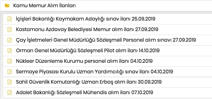 Kamu memur alım ilanlarına göre, İçişleri Bakanlığı Kaymakam alımı, Kastamonu Azdavay Belediyesi memur alımı, Çay İşletmeleri Genel Müdürlüğü sözleşmeli personel alım, Orman Genel Müdürlüğü (OGM) sözleşmeli pilot alımı, Nükleer Düzenleme Kurumu personel alım ilanı, Sermaye Piyasası Kurulu Uzman Yardımcılığı alımı, Sahil Güvenlik Komutanlığı Uzman Erbaş alımı, Adalet Bakanlığı sözleşmeli mühendis alımı yapmakta. Memur alımı son dakika iş başvurusu ve Kamu memur alım ilan başvuru şartlarına İŞKUR üzerinden ulaşılabilmekte. İşte memur alımı İŞKUR iş ilanları, memur alımı önlisans-lise, memur alımı başvuru tarihi ve kamu memur alımı şartlarına ilişkin detaylar…