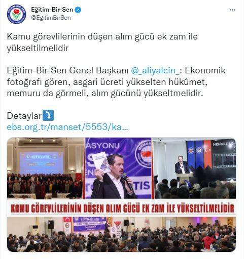 Memur-Sen Genel Başkanı Ali Yalçın, asgari ücretin belirlenmesinin ardından kamu görevlilerinin de kayıplarının ek zam ile telafi edilmesi gerektiğini söyledi.