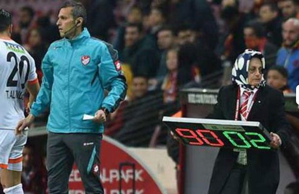 Süper Lig'deki Galatasaray-Adanaspor maçında görev yapan kadın saha komiseri Sevgi Yalçın, karşılaşmanın ilgi odağı oldu.