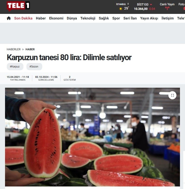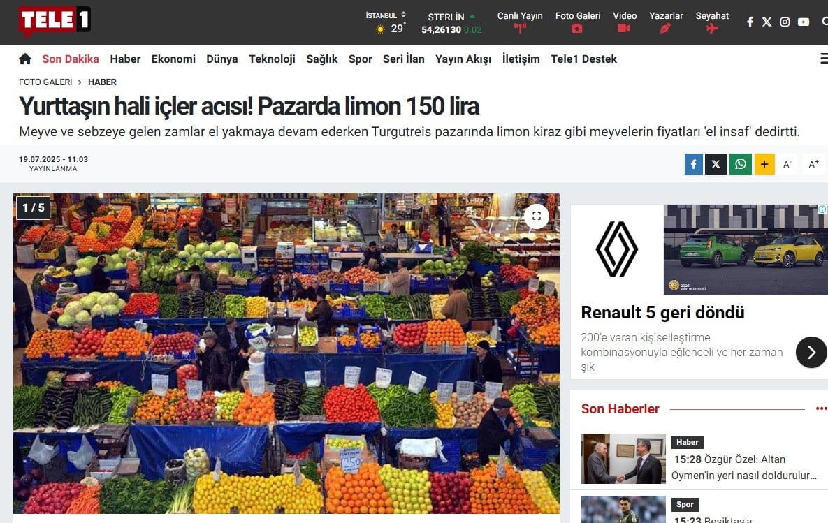 Tele1 karpuzun artık dilimle satıldığını iddia ederek ekonomiyi hedef almıştı. Ancak Temmuz 2025'te karpuz ucuzlayınca kanal, bu kez limon fiyatlarına odaklanarak "yurttaşın hali içler acısı" başlığını attı.