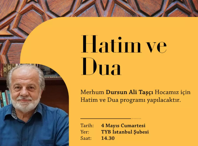 Mahmut Bıyıklı yazısının devamında merhum Dursun Ali Taşçı için TYB İstanbul Şubesi'nde 4 Mayıs Cumartesi günü Hatim ve Dua programı yapılacağını aktardı.