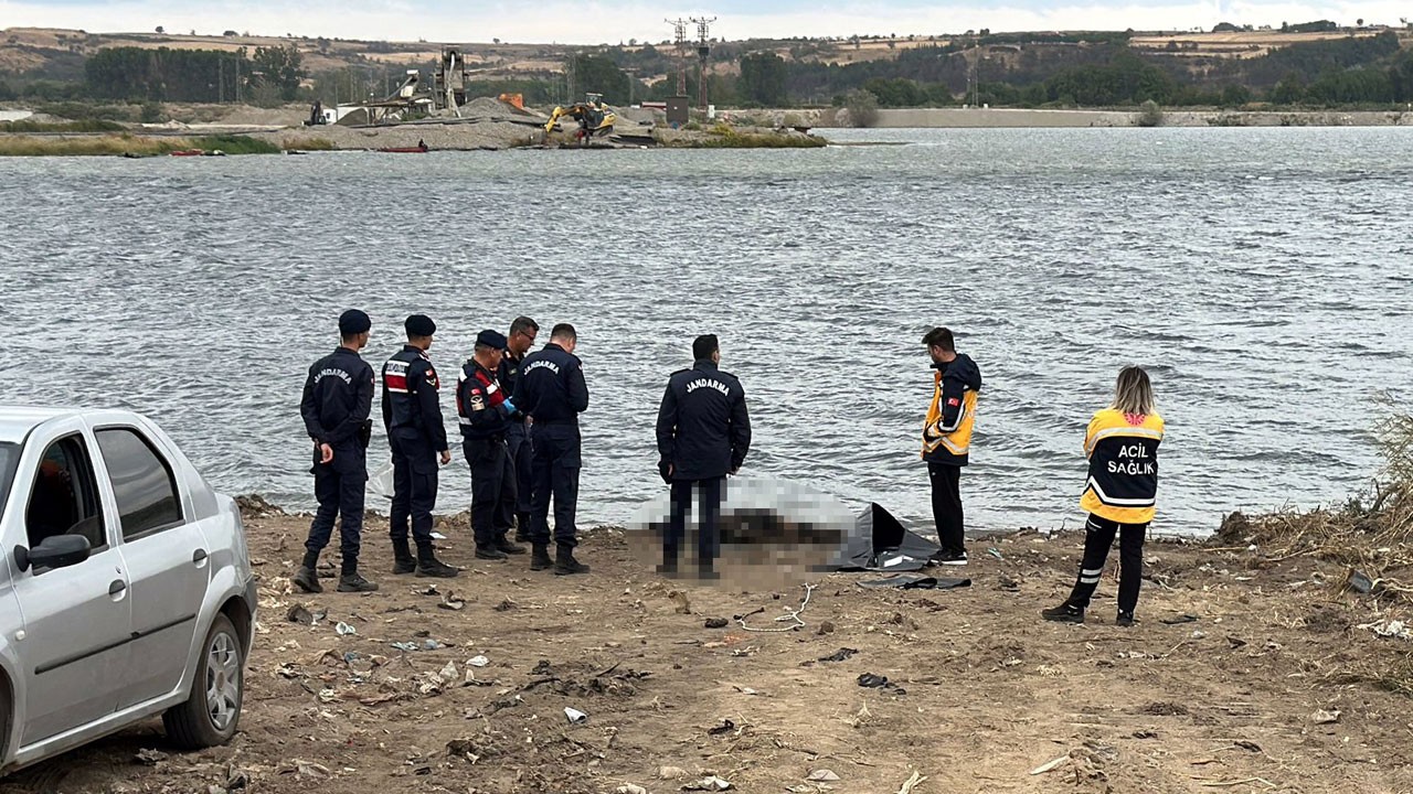 Edirne’de Meriç Nehri’nin kum ocağı yakınlarında erkek cesedi bulundu.
