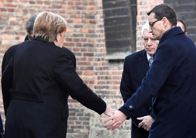Polonya'nın Oscwinchim kentindeki Auschwitz-Birkenau toplama kampını ilk kez ziyaret eden Alman Şansölye, burada Polonya Başbakanı Mateusz Morawiecki ile Naziler tarafından öldürülen insanlar anısına çiçek bıraktı.