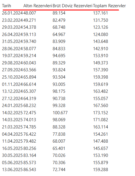 TCMB rezervleri Ocak 2024'ten bu yana şöyle (milyon dolar):