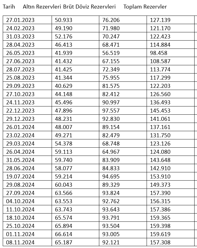 Böylece Merkez Bankasının toplam rezervleri, 8 Kasım haftasında bir önceki haftaya göre 2 milyar 311 milyon dolar azalışla 159 milyar 619 milyon dolardan 157 milyar 308 milyon dolara indi.