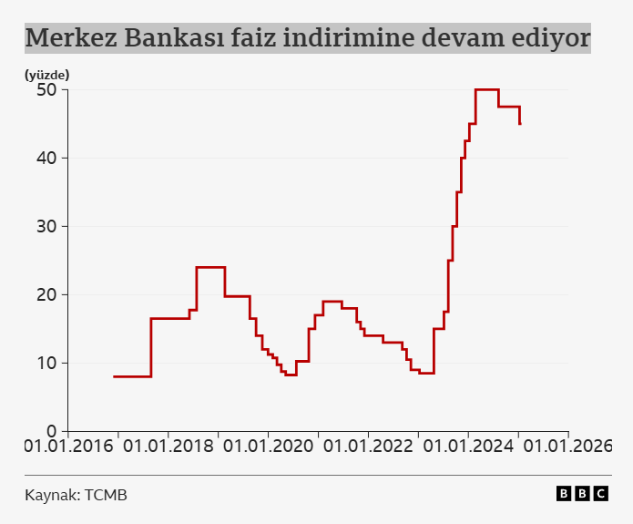 Banka Ocak ayında da faizi 250 baz puan aşağı çekerek yüzde 45'e indirdi.