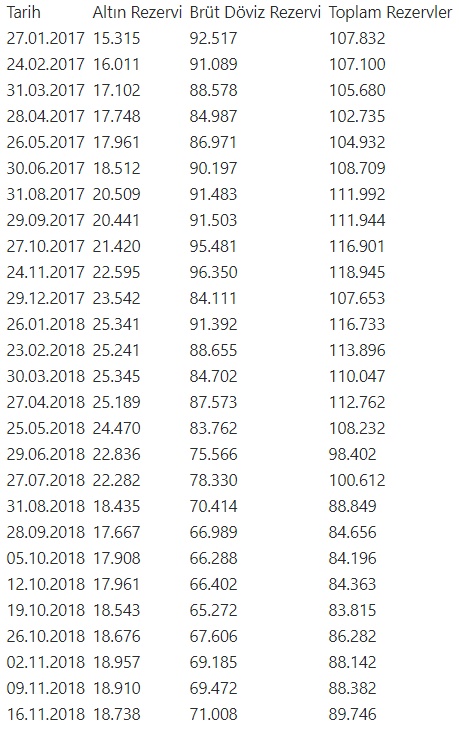 TCMB rezervleri tarihler itibarıyla şöyle (milyon dolar):