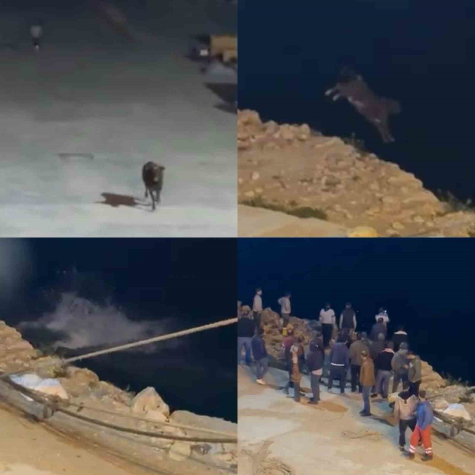 Mersin'de inanılmaz anlar! Kaçan angus denize balıklama atladı!