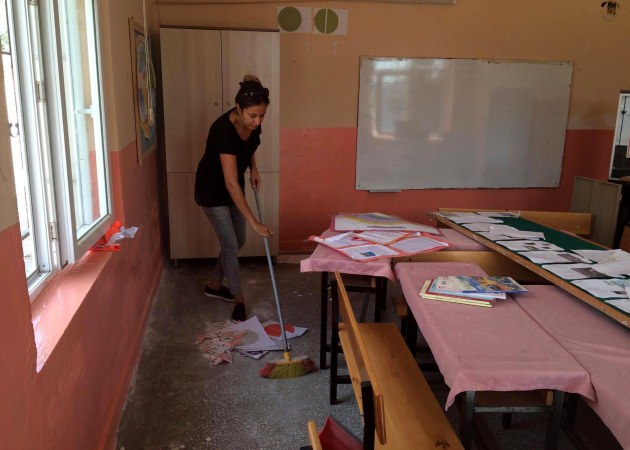 Ardından da harekete geçerek ellerine fırça alıp okulun koridorlarını ve sınıflarını tek tek boyadı. Bir yandan da sınıfları yıkayarak, temizlik yapan öğretmenler sıraları da bakımdan geçirdi. Sınıfta bulunan sıraları okul bahçesine çıkartan öğretmenler tadilatını yapıp, boyayıp tamir ettikten sonra yeniden içeriye aldı.
