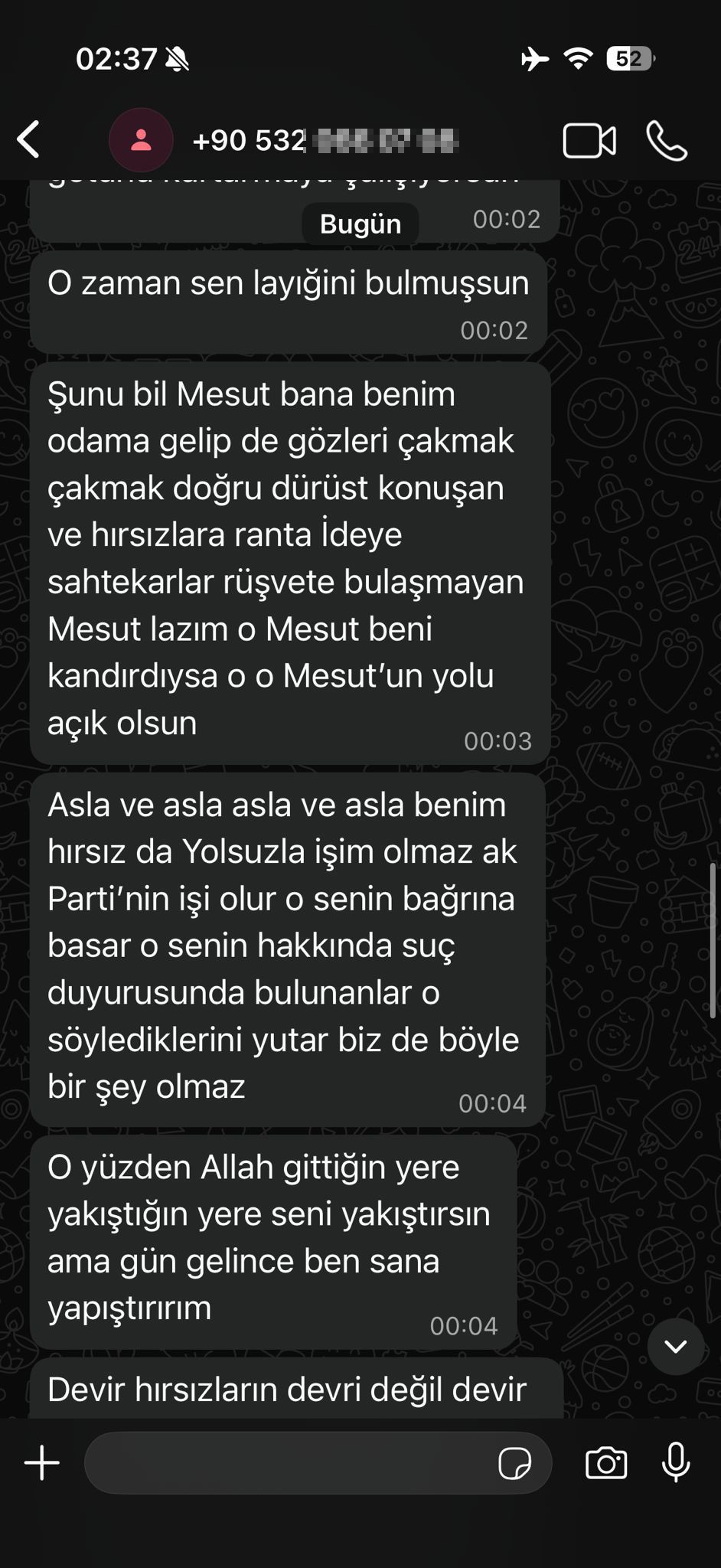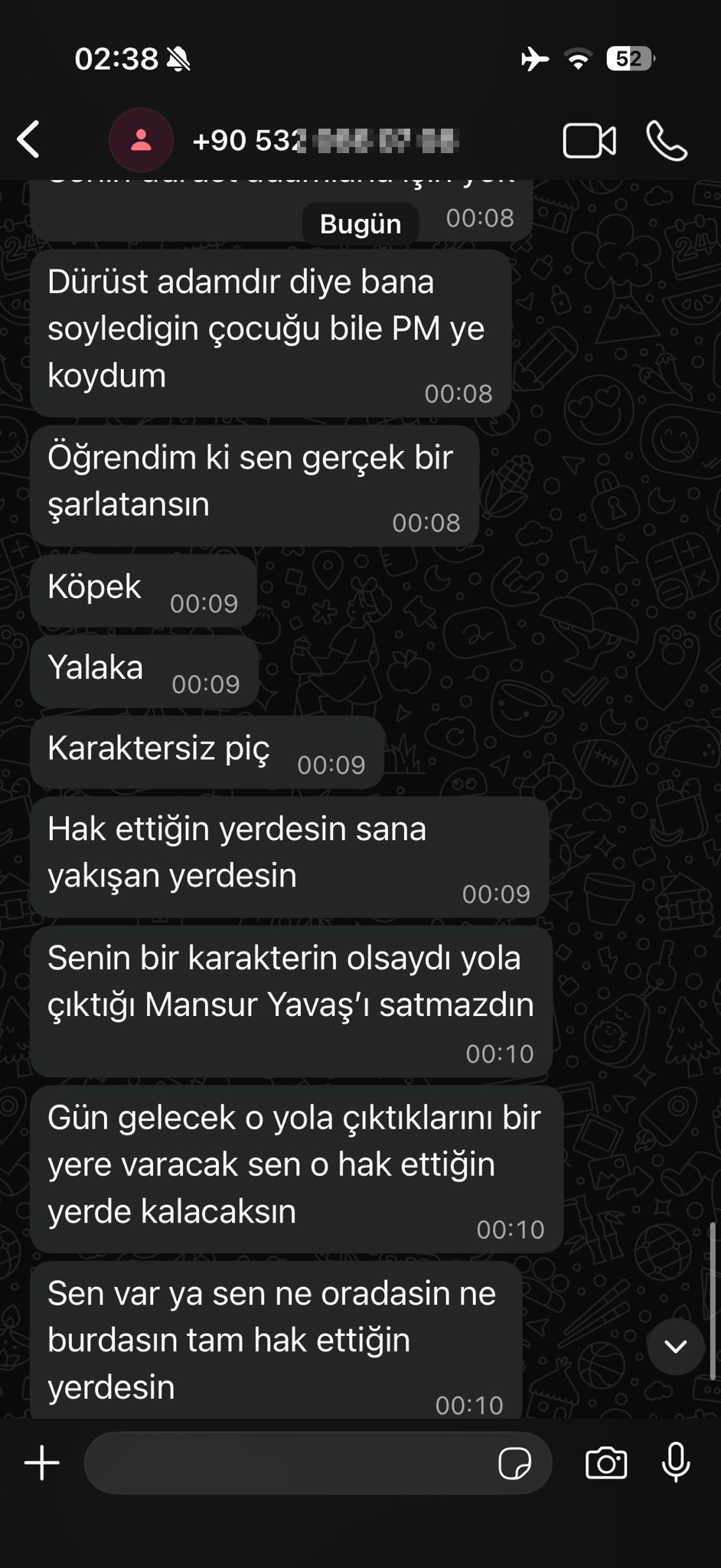 Mesut Özarslan’ın ilçesine hizmet getirmek için yürüttüğü devlet diyaloğunu "ihanet" olarak gören Özgür Özel’in, hırsını alamayıp bir belediye başkanına ağza alınmayacak hakaretler savurduğu mesajlar ortaya çıktı. Paylaşılan mesaj dökümlerinde; "Sktir git", "Alçak köpek", "Karaktersiz pç" ve "G*tünü kurtarmaya çalışıyorsun" gibi galiz küfürlerin havada uçuştuğu görülüyor.