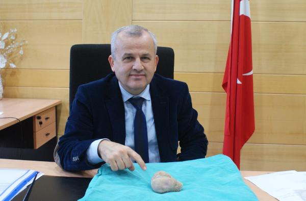 Isparta Süleyman Demirel Üniversitesi (SDÜ) Araştırma ve Uygulama Hastanesi'nde, Hasan Demir'in (72) mesanesinden tek parça halinde, 10x10 santimetre boyutunda ve 270 gram ağırlığında taş çıkarıldı.