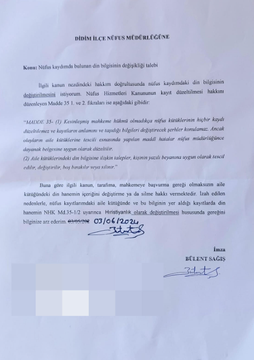 “Milli Eğitim Bakanlığı maarif müfredatı yönetmeliği her geçen gün laiklik, demokratik, bilimsel, Atatürk'ü yok saydığı ve zorunlu din derslerini kınamak için din değişikliğine gittim. Deist ve ateist olmanız çocuklarınızı eğitim din dersinden muaf etmiyor sadece Hristiyan ve Yahudi çocukları din dersinden muaf oluyor.”