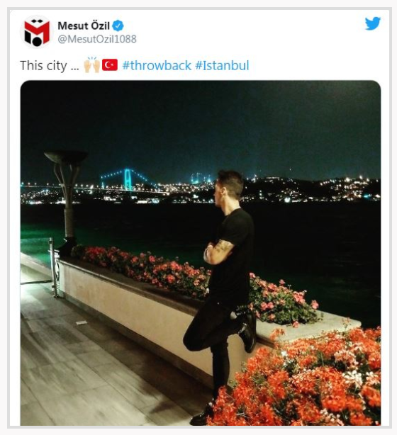 Mesut Özil, İstanbul Boğazı'nda çekilmiş bir fotoğrafını "Bu şehir" ifadesiyle paylaştı.