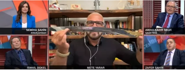 Güvenlik politikaları uzmanı Mete Yarar, CNN Türk canlı yayınında 'Yatağan Kılıcı'nı gösterdi.