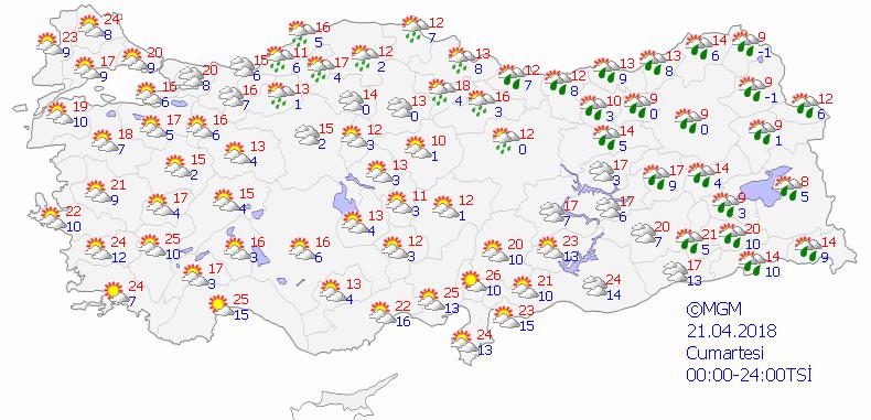 21 NİSAN 2018 CUMARTESİ HAVA DURUMU