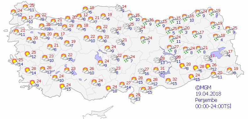 19 NİSAN 2018 PERŞEMBE HAVA DURUMU