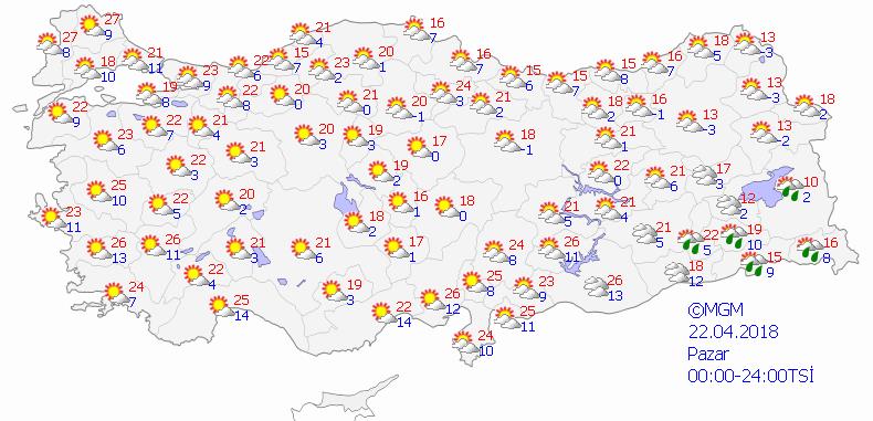 22 NİSAN 2018 PAZAR HAVA DURUMU