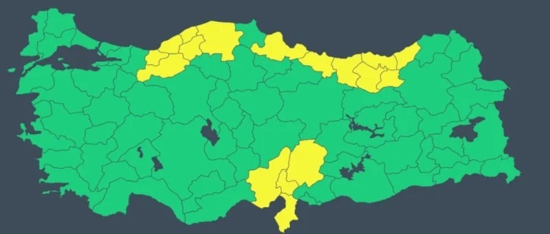 Meteoroloji Genel Müdürlüğü, sağanak ve kar yağışının neden olabileceği olumsuzluklara karşı 17 il için "sarı kodlu" uyarı yayımladı. Listede Adana, Bolu, Giresun, Gümüşhane, Hatay, Kastamonu, Kahramanmaraş, Ordu, Rize, Samsun, Trabzon, Zonguldak, Bayburt, Bartın, Karabük, Osmaniye ve Düzce yer alıyor. Yetkililer, bu illerde yaşayan vatandaşların sel, su baskını ve ulaşımda yaşanabilecek aksamalara karşı tedbirli olmalarını istedi.