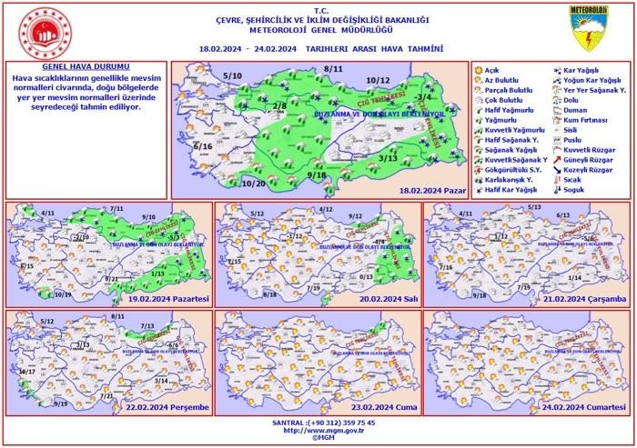 Meteoroloji Genel Müdürlüğü tarafından yapılan son değerlendirmelere göre: Ülkemiz genelinin parçalı ve çok bulutlu, Karadeniz (Gümüşhane ve Bayburt hariç), Doğu Akdeniz kıyıları, İç Anadolu (Eskişehir haric), Doğu Anadolu'nun doğusu Güney Doğu Anadolu güney ve doğusu ile Antalya'nın doğusu, Bilecik ve Sakarya çevrelerinin yağışlı geçeceği tahmin ediliyor.
