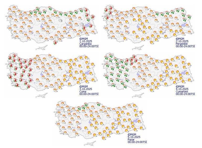 Meteoroloji Genel Müdürlüğü (MGM) yeni hava durumu raporu paylaştı. Türkiye'nin sonbahar aylarında iki cepheli bir hava sisteminin etkisi altına gireceği duyuruldu. 30 Eylül Salı gününden itibaren Doğu Karadeniz ve Doğu Akdeniz çevrelerinde kuvvetli gök gürültülü sağanak yağışlar bekleniyor.