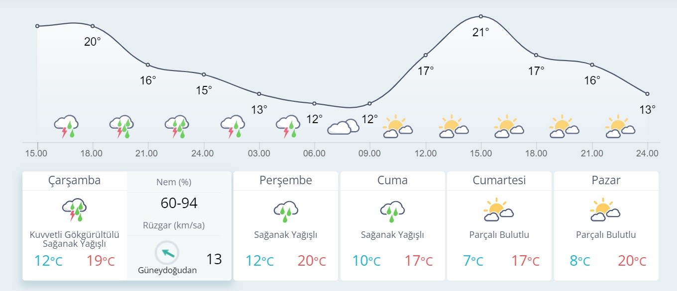Meteoroloji Genel Müdürlüğü, 23 Kasım Çarşamba günü için Aydın'da şiddetli yağış beklendiğini duyurdu.