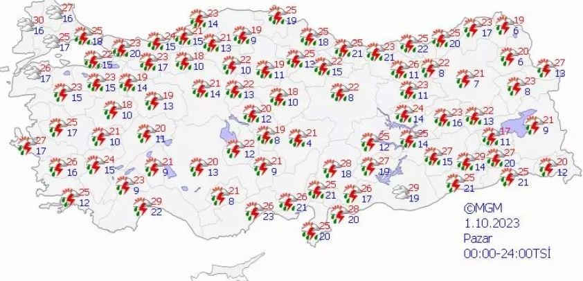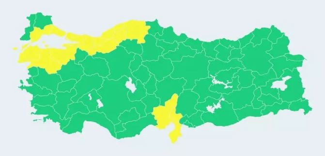 Meteoroloji tarafından pazar günü için birçok ile sarı ve turuncu kodlu uyarı verildi. Adana, Samsun, Osmaniye ve Hatay'a sarı ve turuncu kodlu; Ankara, Balıkesir, Bolu, Çanakkale, Çorum, Elazığ, Giresun, İstanbul, Kayseri, Kocaeli, Nevşehir, Rize, Sİnop, Tekirdağ, Trabzon, Yozgat, Kırıkkale, Şırnak, Yalova, Amasya, Artvin, Bingöl, Bursa, Çankırı, Diyarbakır, Erzincan, Kastamonu, Kırşehir, Malatya, Ordu, Sakarya, Siirt, Sivas, Tokat, Tunceli, Zonguldak, Batman, Bartın, Karabük ve Düzce'ye sarı kodlu uyarı verildi.