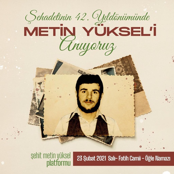 Fatih Camii avlusunda bir cuma namazı çıkışı kurulan pusu neticesinde şehit edilen zamanın en önemli gençlik hareketi liderlerinden Metin Yüksel, şehadetinin 42. yılında anılıyor.