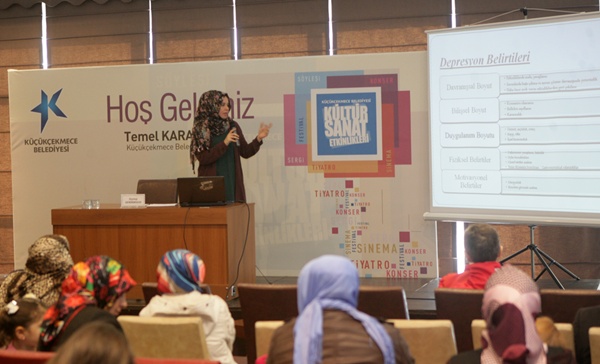 Küçükçekmece Belediyesi ve İBB Kadın ve Aile Sağlığını Koruma Hizmetleri Birimi işbirliğiyle gerçekleştirilen söyleşide Psikolog Zeynep Demirbozan Küçükçekmecelilere “Depresyon ve Hayata Etkileri”ni anlattı.