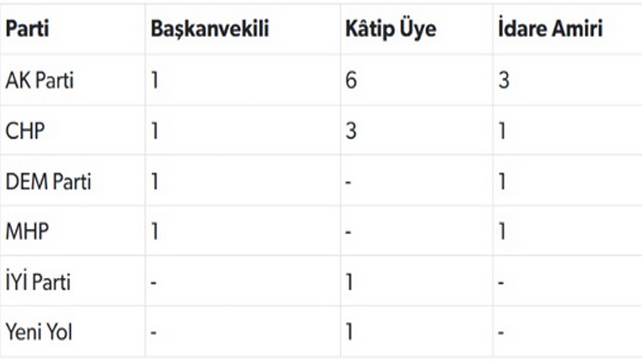 AK Parti: 1 Başkanvekili, 6 Kâtip Üye, 3 İdare Amiri