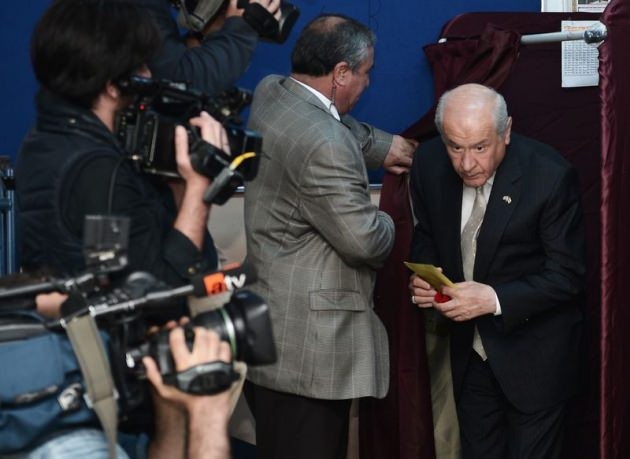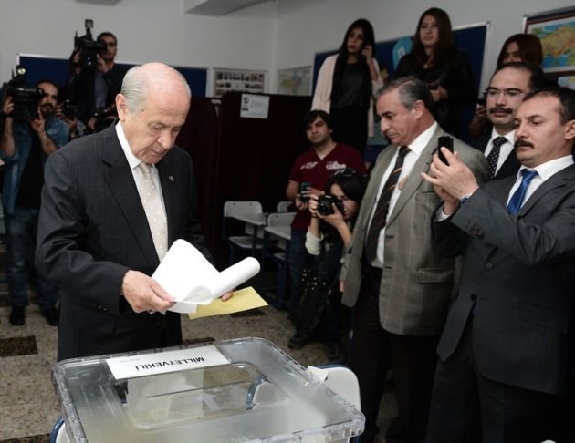 MHP Lideri Devlet Bahçeli saat 12.00’da Anıttepe Ortaokulu’nda oyunu kullandı. Oy kullanma işlemi öncesi Başbakanlık AFAD ekipleri Bahçeli’nin oyunu kullanacağı sandıkta kimyasal araması yaptı.