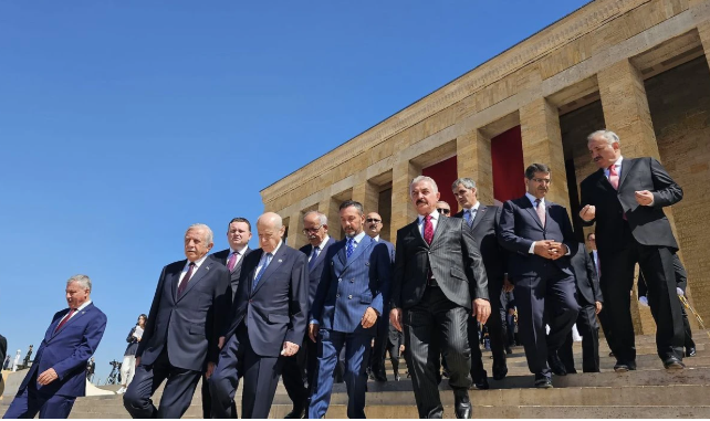 MHP lideri Bahçeli, Gazi Mustafa Kemal Atatürk'ün ölümünün 87'nci yıl dönümü nedeniyle bir mesaj yayımladı. Bahçeli, "Türkiye Cumhuriyeti Devleti'nin kurucusu, istiklal mücadelemizin lideri, ilk Cumhurbaşkanımız Gazi Mustafa Kemal Atatürk'ü ebediyete irtihalinin 87'nci senesinde hürmet, rahmet ve minnetle anıyoruz. Aziz Atatürk 57 yıllık ömrüne birçok başarıyı sığdırmış, bu süre zarfında göz kamaştıran sıçramalara imza atmış, şartlara göre değişmeyen ilke ve ülküleriyle Türk tarihine derin izler, arkasında da büyük eserler bırakmıştır. Her kararında, her icraatında, her adımında Türk milletine inanmış, hür ve bağımsız yaşamanın vazgeçilmezliğini rehber edinmiştir. Atatürk esaret altına alınmakla tehdit edilen ve toprakları paylaşılmak istenen bir milletin mücadele ruhu, kurtuluş umudu, diriliş sembolü olarak sivrilmiştir. Gerek askerlik hizmeti süresince gerekse de devlet ve siyaset hayatında karamsarlıktan uzak durmuş, müstevlilerin zulüm senaryolarına kahramanca bir mücadeleyle direnerek milli gönüllerde bayraklaşmıştır" ifadelerini kullandı.