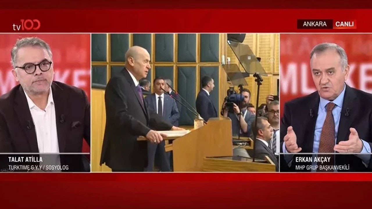 Erkan Akçay, Talat Atilla'nın ABD/İsrail-İran shattındaki gelişmeleri görerek mi MHP'nin "Birlik" çağrısı ve Terörsüz Türkiye sürecinin başlamasına etkili oldu mu? sorusuna şu cevabı verdi; "Terörsüz Türkiye sürecinin başlatılmasındaki faktörlerden birisi tabii ki bu süreç. Bölgemizde yaşananlara baktığımı zaman Türkiye'ye yönelik muhtemel tehditleri görmemek için kör olmak lazım. İç çepheler güçlendirilmeli. 50 yıla yakındır terör belasıyla uğraşmış terörü ülkemizin gündeminden çıkarmak gerekir" ifadelerini kullandı.