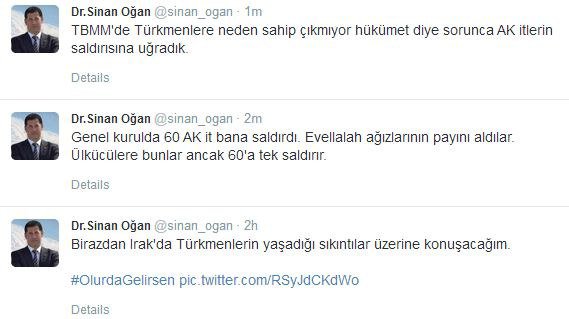Tartışmanın "Hükümet Türkmenlere neden sahip çıkmıyor" sorusu üzerine çıktığını iddia eden MHP'li Oğan, şu mesajları paylaştı; "Genel kurulda 60 AK it bana saldırdı. Evellalah ağızlarının payını aldılar. Ülkücülere bunlar ancak 60'a tek saldırır. TBMM'de Türkmenlere neden sahip çıkmıyor hükümet diye sorunca AK itlerin saldırısına uğradık."