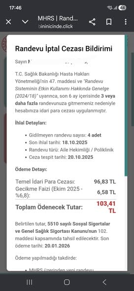 Yetkililer, MHRS veya Sağlık Bakanlığı'nın böyle bir para cezası uygulaması bulunmadığını, bu tür mesajlardaki linklere kesinlikle tıklanmaması ve kişisel bilgilerin paylaşılmaması gerektiğini vurguluyor.